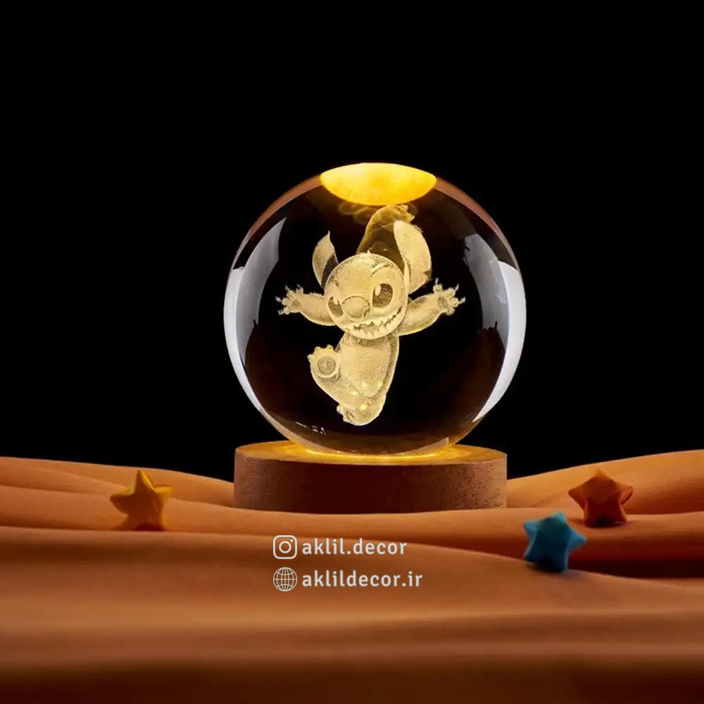 گوی از جنس کریستال شفاف و باکیفیت ساخته شده که تصویر استیچ را بهزیبایی نمایش میدهد.
