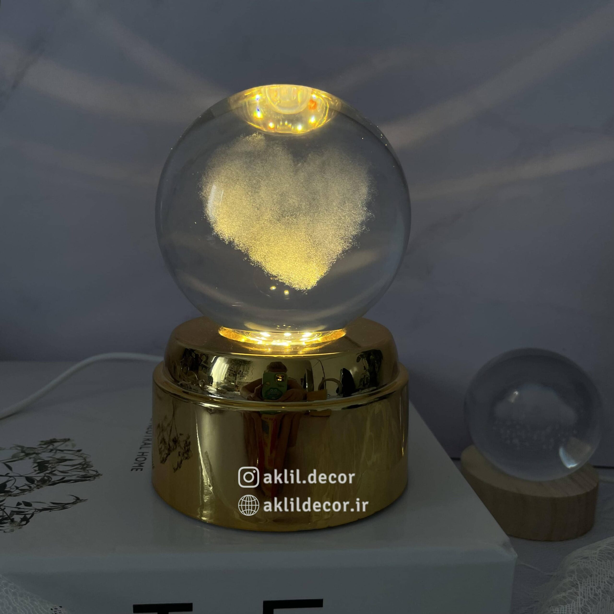 اگر بهدنبال یک چراغ تزئینی خاص و عاشقانه هستید که هم حس آرامش القا کند و هم جلوهای هنری و متفاوت به فضای شما ببخشد، چراغ گوی کریستالی چرخان طرح قلب با طراحی زیبا و نورپردازی جادوییاش، گزینهای بینظیر برایتان خواهد بود. این چراغ با ظاهری شفاف، پایه فلزی طلایی براق و تصویر سهبعدی یک قلب زیبا در مرکز گوی، احساسی از عشق، آرامش و جذابیت را به دکوراسیون شما هدیه میدهد.